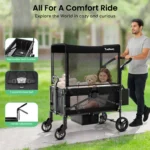 Make outings easier and more enjoyable with our Foldable Baby Stroller with 2 Seats, Multi-Function Wagon with Removable Canopy. Designed for growing families, this versatile wagon-style stroller comfortably seats two children, making it perfect for siblings, playdates, or family adventures.