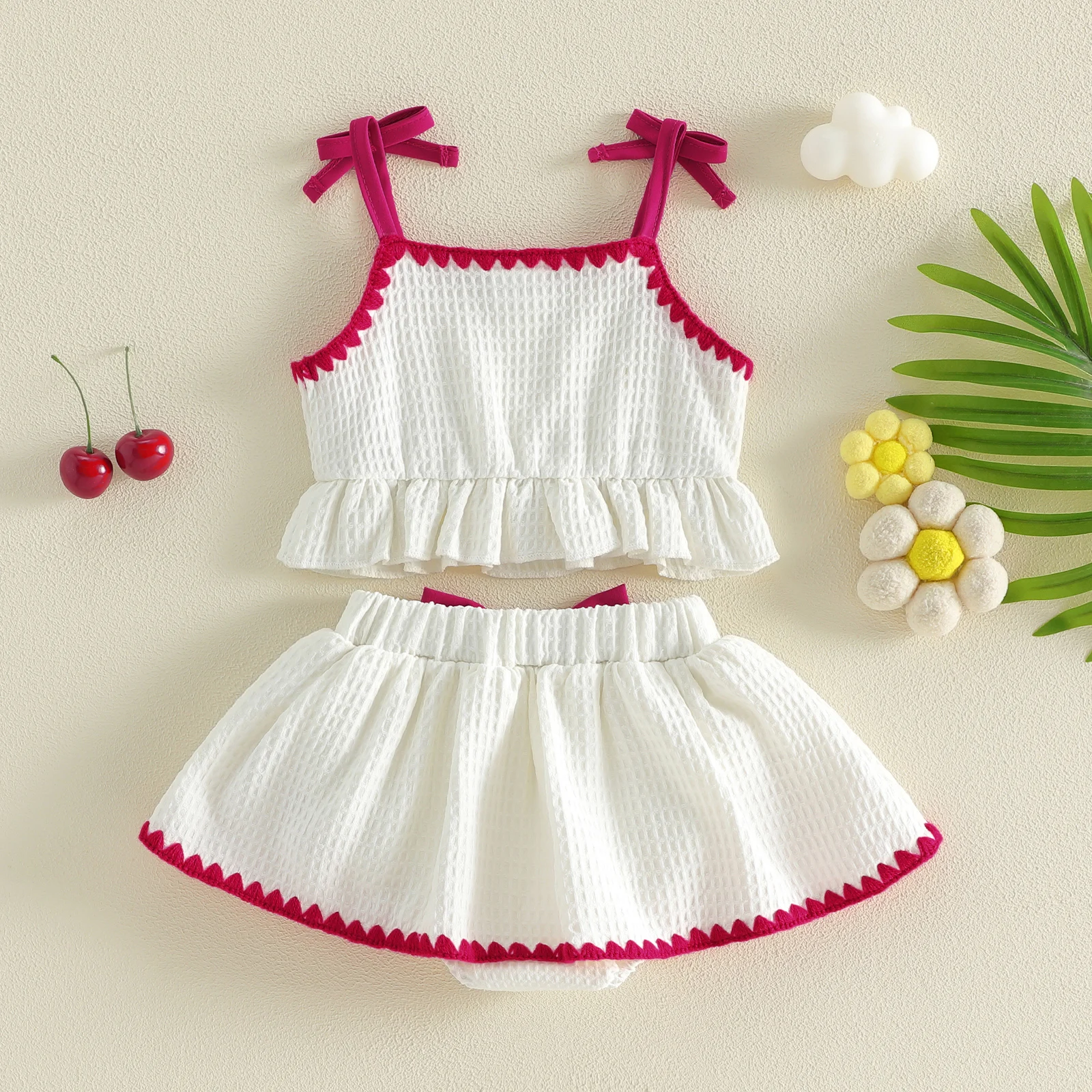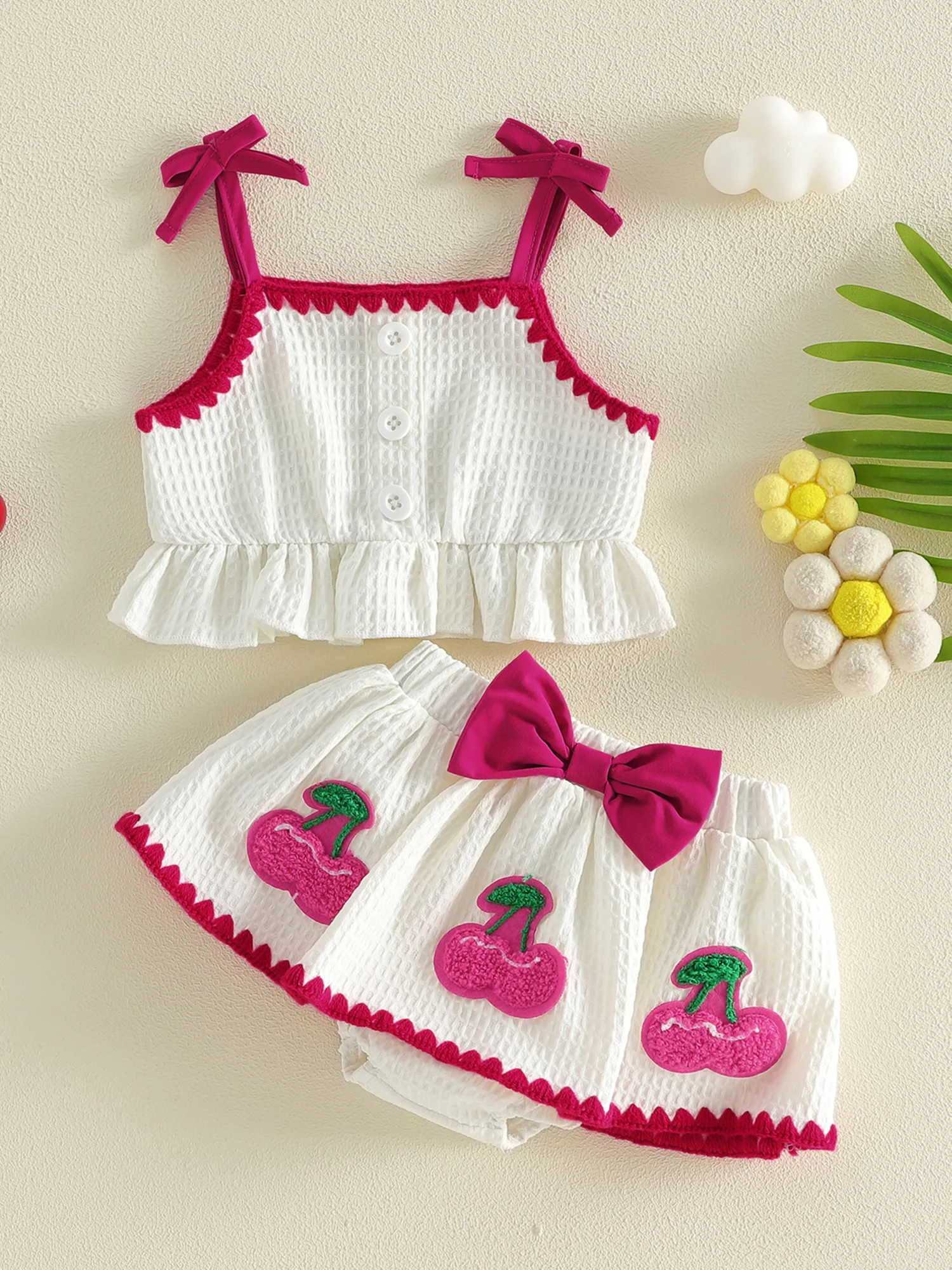 - Matching shorts with playful ruffled hem
