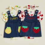 A fun and fashionable outfit set that adds fruity sweetness and adorable style to your little girl’s wardrobe. 🍉🎀✨