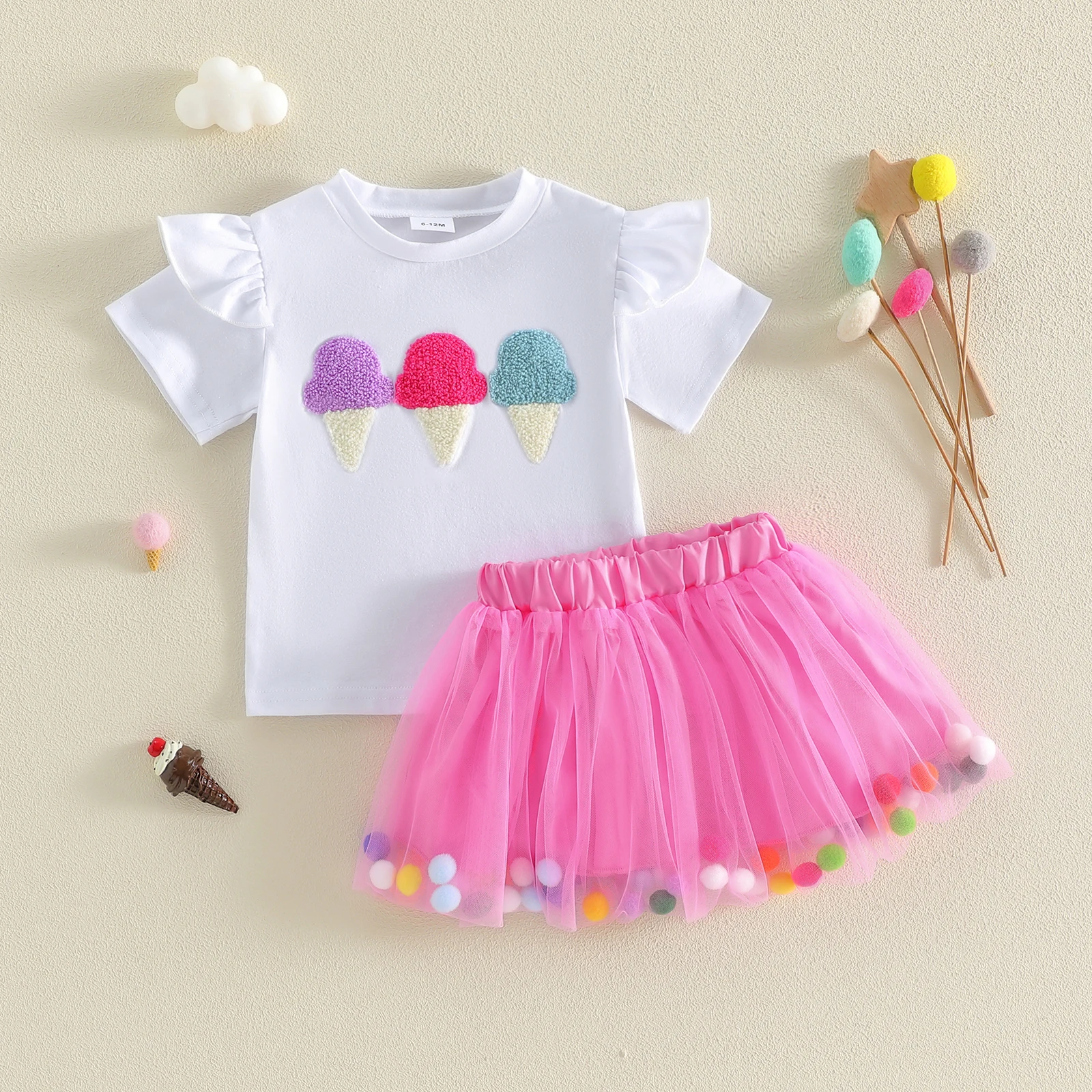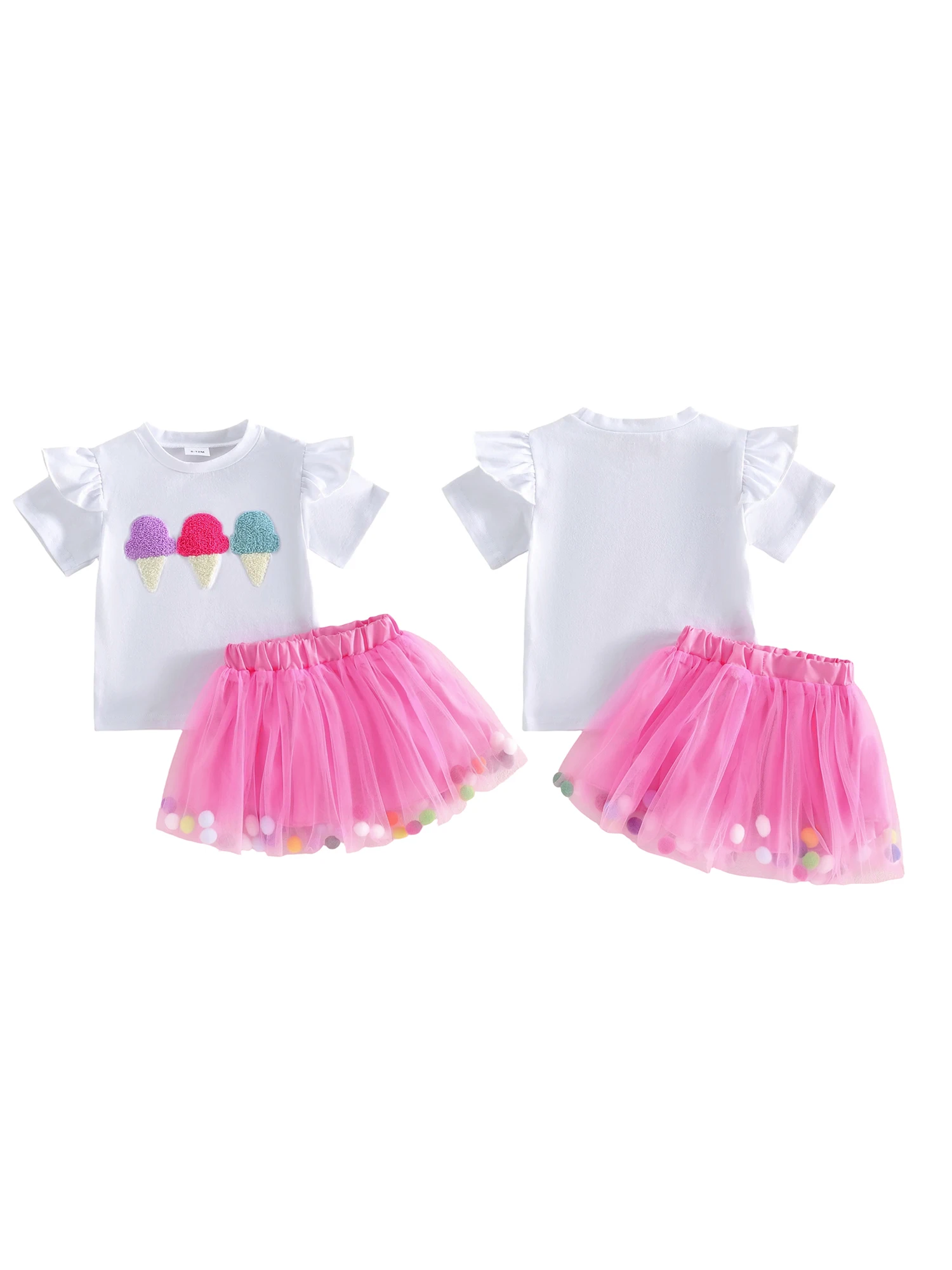 Girls Summer Ice Cream Cone Print Top and Ruffled Skirt Set