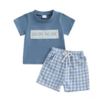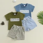 The embroidered T-shirt adds fun, playful detail to his look, while the plaid shorts bring timeless pattern and casual flair. Crafted from soft, breathable fabrics, this outfit lets him move freely and stay comfortable whether he’s playing outside, heading to school, or enjoying family time.