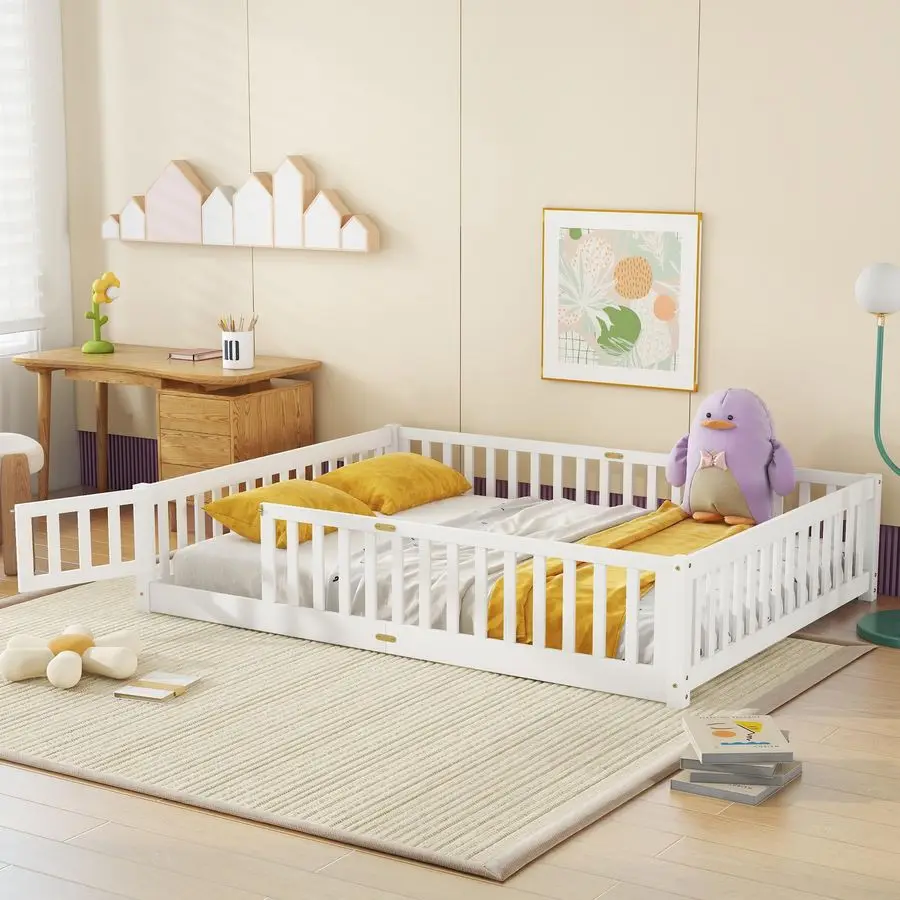 Create a safe and stylish sleep space with our Queen Floor Bed Made of Solid Wood with Safety Guardrails. Designed with a low-to-the-ground Montessori-inspired layout, this floor bed encourages independence while providing parents peace of mind.