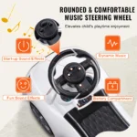 Featuring a realistic steering wheel with built-in music, it adds excitement to every ride and keeps kids entertained. The smooth-rolling wheels and comfortable seat make it perfect for indoor and outdoor use, while the parent push support allows grown-ups to guide younger riders with ease.