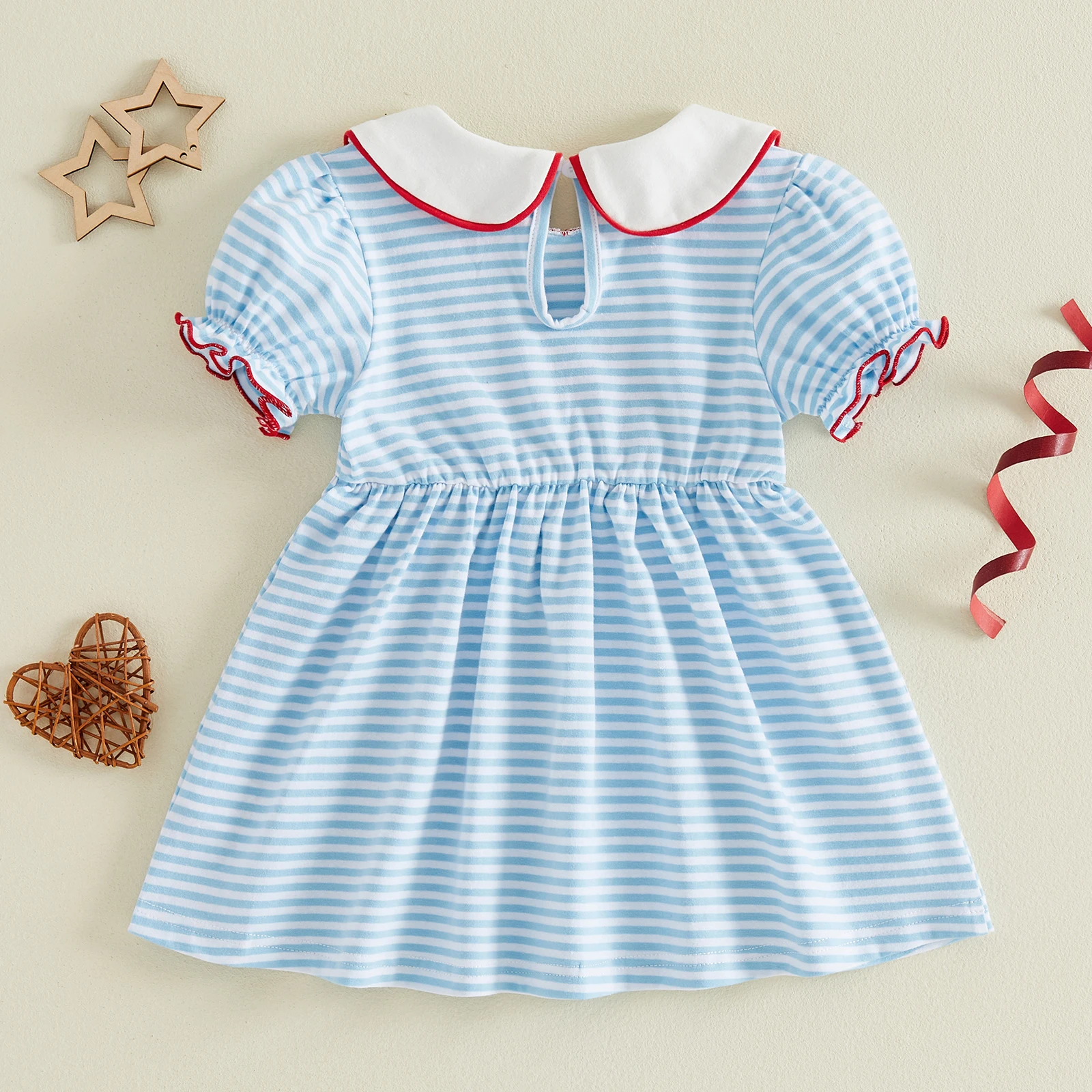 Celebrate summer in patriotic style with our Summer Striped Print Sleeveless Dress with USA Embroidery. Perfect for warm-weather outings, holiday parties, and festive family gatherings, this adorable dress combines classic striped charm with beautiful USA-inspired embroidered details for a fun and stylish seasonal look.