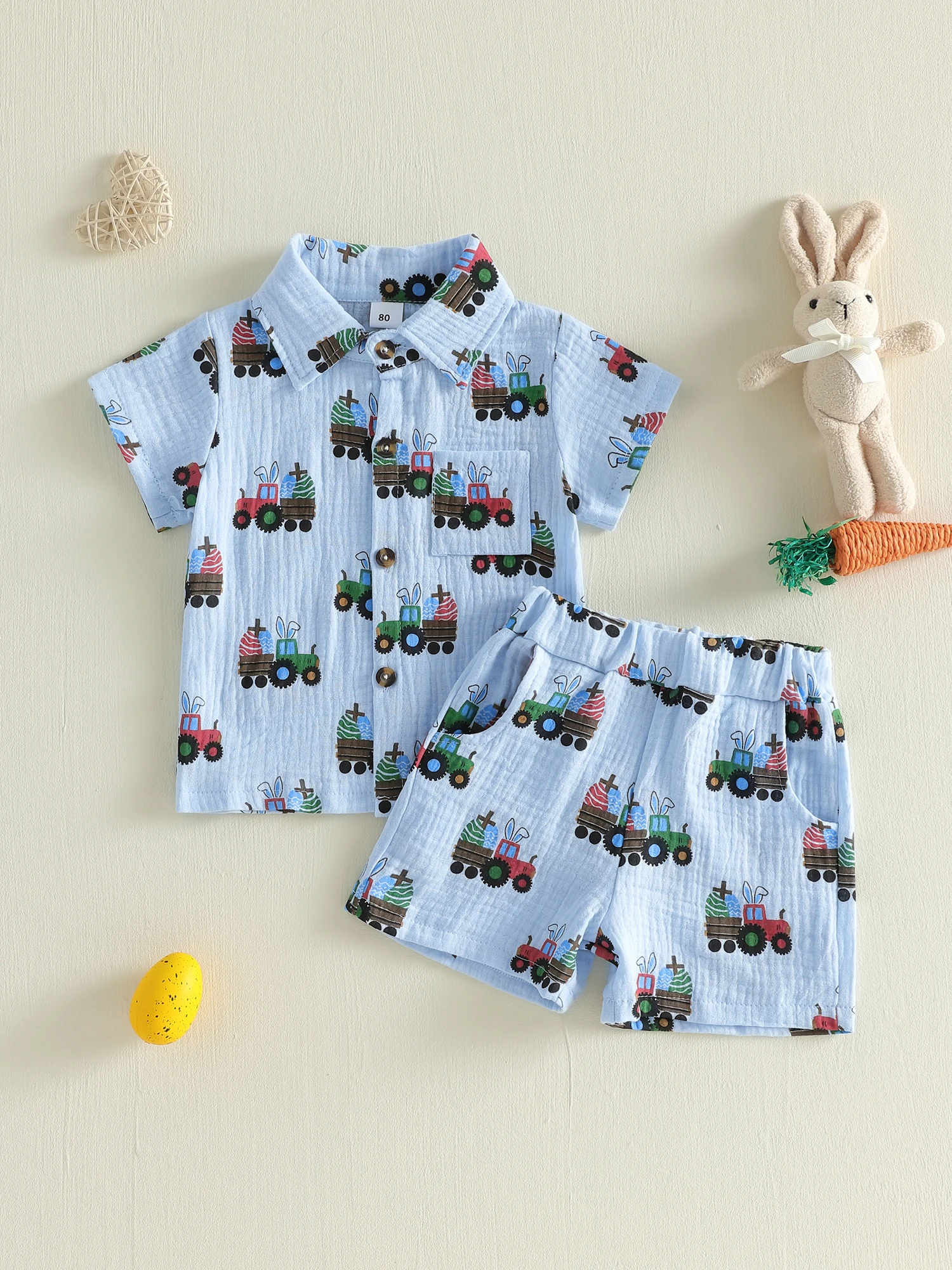 Featuring a soft, Easter-themed design with an adorable bunny motif, this outfit captures the joy of the season while keeping your little boy comfortable all day. Easy to wear and perfectly coordinated, it’s a delightful choice for seasonal celebrations and memorable moments.